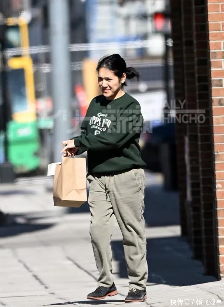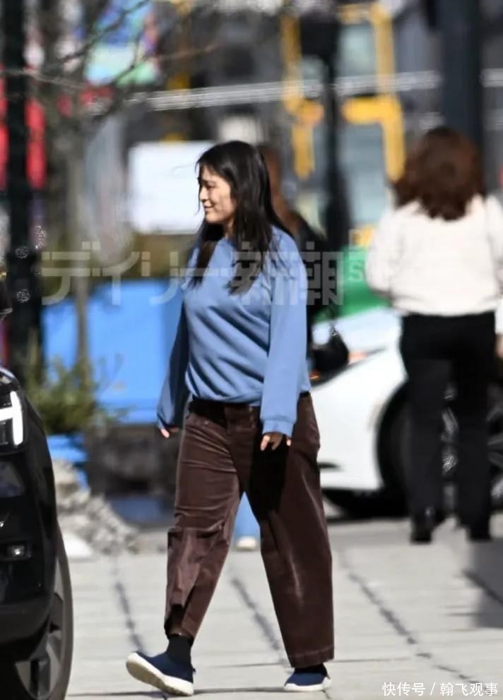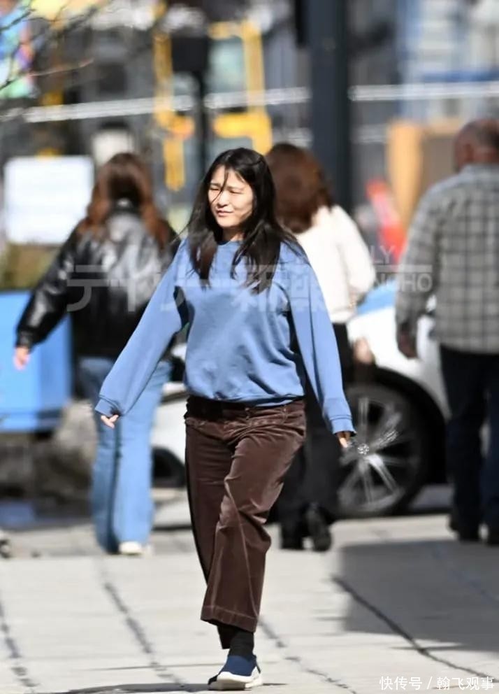 当天她身着浅蓝连帽卫衣,下搭深棕休闲长裤,黑发自然垂落,未施粉黛,整体造型极尽随性。看似不加修饰,却洋溢着一种自在呼吸般的松弛力量,正是她长久以来渴望并终于拥有的生活方式。