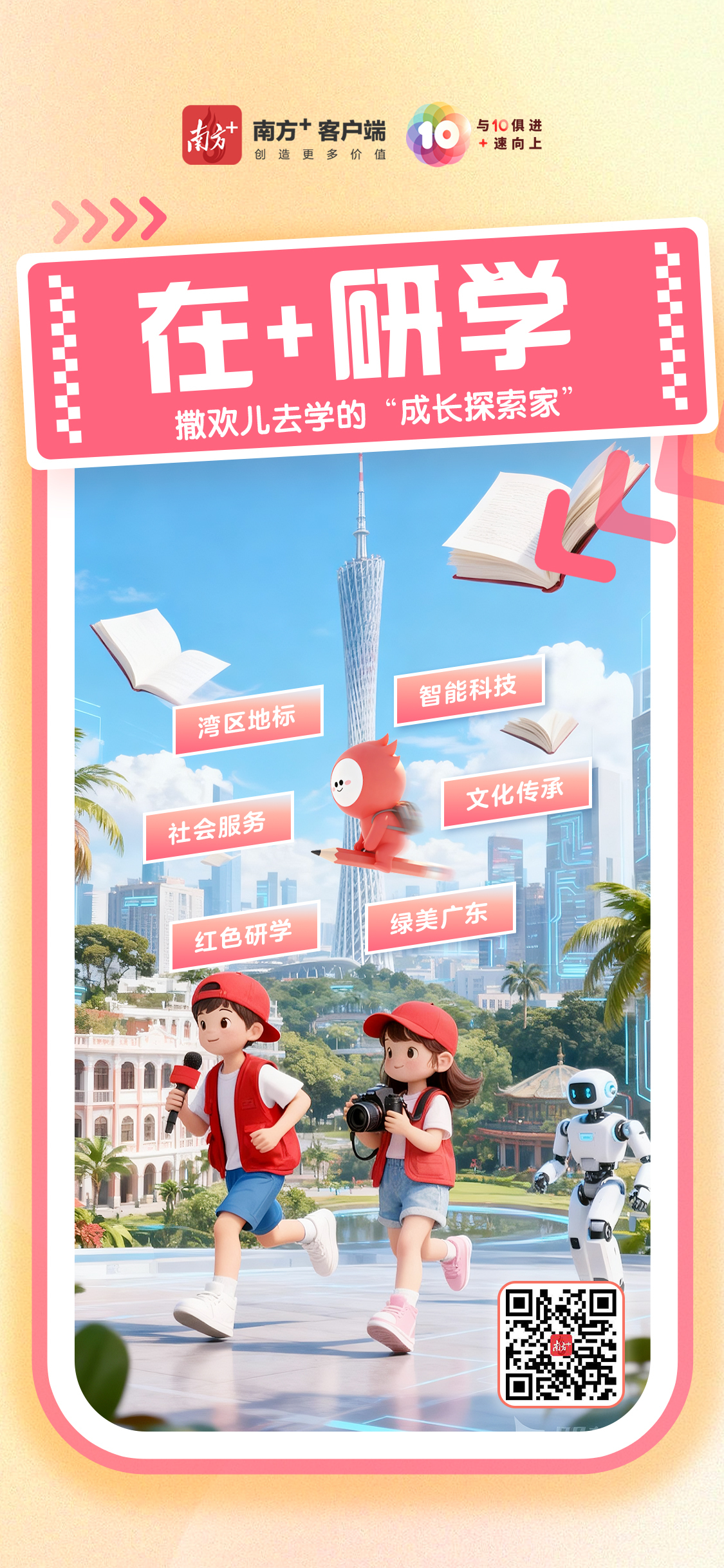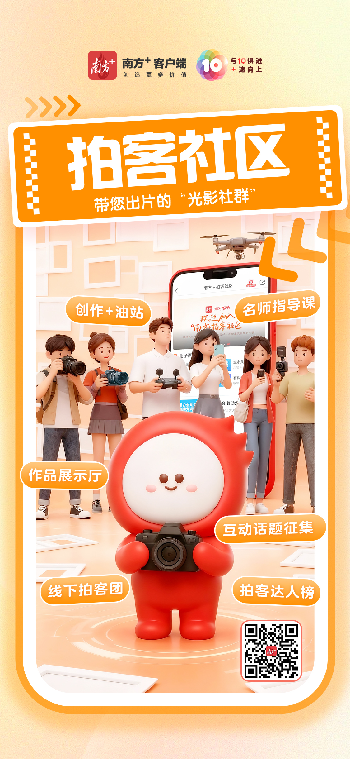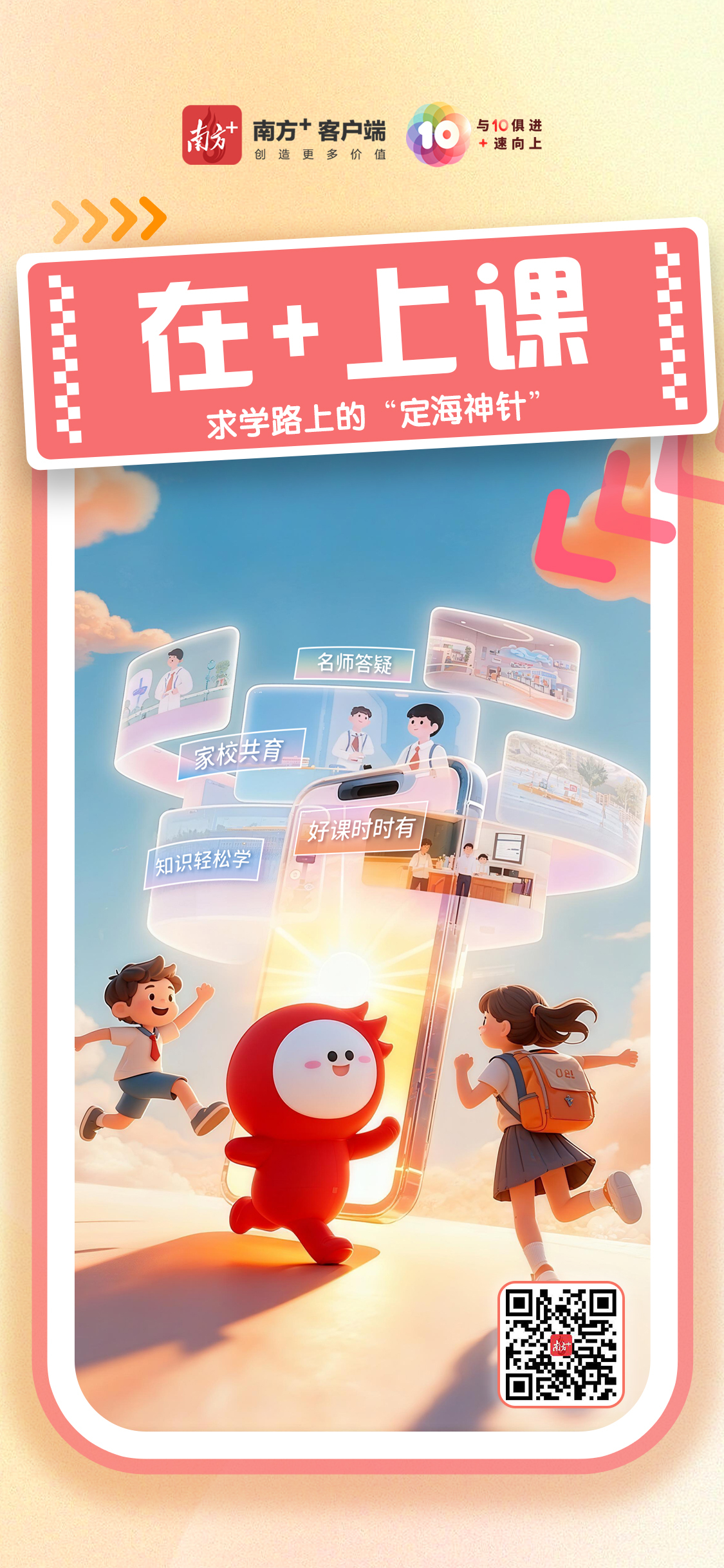 与10俱进,+速向上。10月23日,南方+客户端迎来上线十周年。3600多个日与夜,南方+始终坚持“创造更多价值”,2亿多用户在这里读懂广东、读懂大湾区、读懂中国。站在10周年新的起点上,南方+将更加重视深度连接用户、服务用户,深入推进主流媒体系统性变革,焕新推出与升级“+游广东”“食在广东”“在+帮办”“在+优购”等服务平台,秀“10”力、倍宠粉,努力成为更多用户的“实用收藏夹”。