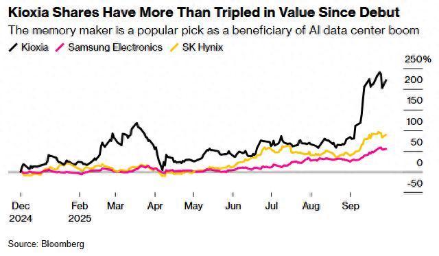 渡边指出,当前需求强劲主要来自超大规模AI芯片需求方,部分客户正计划更换五六年前部署的服务器,另有客户反馈硬盘供应短缺。自2024年12月在东京上市以来,Kioxia股价已翻三倍,市值与韩国内存巨头三星电子、SK海力士并驾齐驱,成为AI基础设施热潮的受益者。